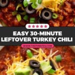 This 30-Minute Leftover Turkey Chili is a quick, hearty, and flavorful dish that transforms leftover turkey into a comforting meal. Packed with beans, tomatoes, and spices, it’s perfect for a filling dinner topped with your favorite chili accompaniments like sour cream, avocado, shredded cheese, and scallions.