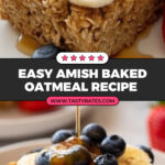 Amish Baked Oatmeal is a warm, hearty breakfast dish featuring rolled oats baked with milk, eggs, maple syrup, and spices to create a delicious, non-mushy texture. This easy-to-make recipe is perfect for preparing ahead and baking fresh in the morning, making it a comforting meal the whole family will enjoy.