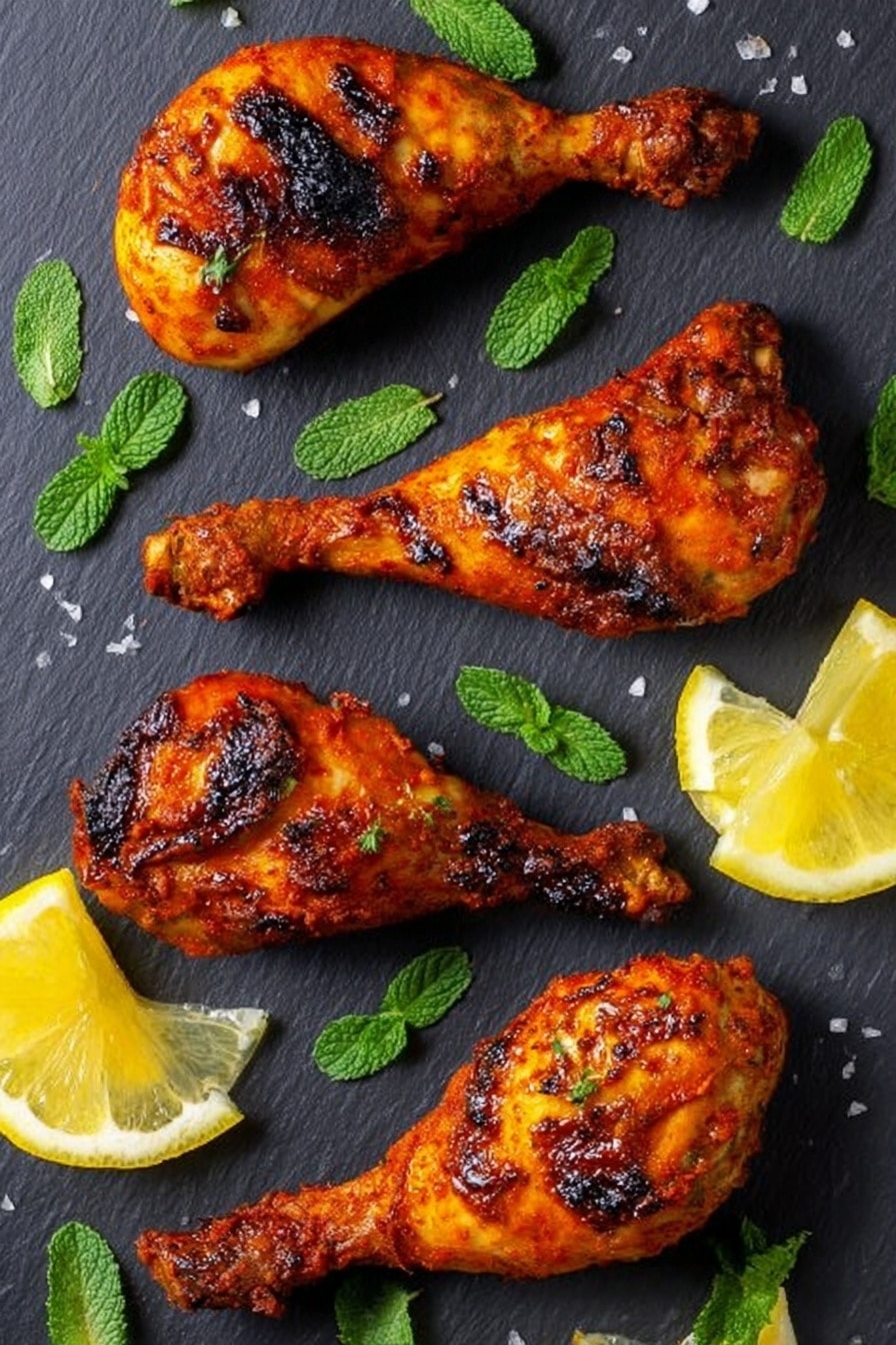 Authentic Tandoori Chicken is a flavorful Indian dish featuring tender chicken marinated in a blend of yogurt and traditional spices like cumin, garam masala, and smoked paprika, then oven-baked to perfection with a slightly charred finish.