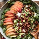 A vibrant and flavorful Autumn Harvest Salad featuring Honeycrisp apples, crisp prosciutto, toasted pecans and pumpkin seeds, creamy avocado, pomegranate arils, and tangy feta cheese, all tossed in a warming apple cider vinaigrette with fresh herbs. This salad combines sweet, savory, and spicy elements for a perfect seasonal dish.