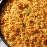 Transfer everything into a buttered casserole dish and spread the panko topping over the surface. Bake at 350°F (175°C) for about 25–30 minutes, or until bubbly around the edges and the topping turns golden brown. Keep an eye on it toward the end, because that golden crust can go from perfect to burnt quickly!