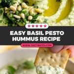 This creamy Basil Pesto Hummus combines the rich flavors of fresh basil, pine nuts, and parmesan with traditional chickpeas and tahini to create a smooth and flavorful dip. Perfect for serving with veggies, crackers, or spreading on sandwiches, this gluten-free and vegan-friendly recipe is quick to prepare, nutritious, and packed with Mediterranean-inspired goodness.