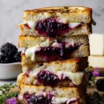 This Blackberry Balsamic and Brie Grilled Cheese is a delightful blend of sweet, tangy, and creamy flavors. Fresh blackberries simmered with balsamic vinegar and sugar create a rich jam that perfectly complements the creamy double cream brie cheese. Sandwiched between buttery, toasted sourdough bread and garnished with fresh thyme, this grilled cheese offers a sophisticated twist on a classic comfort food, making it an irresistible treat for any time of day.
