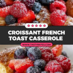 This Croissant French Toast Casserole is a deliciously decadent breakfast or brunch dish that features crisp croissants soaked in a rich cinnamon-vanilla custard, layered with fresh mixed berries, and baked to golden perfection. Perfect for holiday mornings, baby showers, or potlucks, it can be assembled ahead of time and baked when ready for a wonderfully comforting and crowd-pleasing meal.