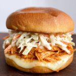 - Assemble the Burgers: Add a generous scoop of blue cheese slaw on top of the melted mozzarella and shredded buffalo chicken on each bun. Cover with the top bun and serve immediately for the best texture and flavor.