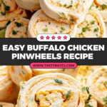 For special occasions, I arrange the pinwheels in a spiral on a large serving tray with colorful bell pepper strips and olives in the center—it looks festive and so inviting. You can also serve them open-faced as mini “boats,” sliced but unrolled, topped with extra buffalo sauce and garnishes for a fun twist.
