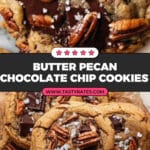 These Butter Pecan Chocolate Chip Cookies combine the rich, nutty flavor of browned butter with the sweetness of dark chocolate and the crunch of toasted pecans. With a golden crispy exterior and a soft, melty interior, these cookies offer a perfect balance of texture and taste, enhanced by a touch of flaky sea salt on top.