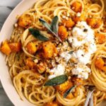 This Butternut Squash Pasta with Sage is a comforting and elegant dish featuring caramelized butternut squash, a rich brown butter sage sauce, crispy sage leaves, toasted walnuts, and creamy ricotta. The pasta is perfectly coated in a silky sauce made from butter, Parmesan, and pasta water. Aromatic spices like ginger, nutmeg, cumin, and a hint of cayenne add depth to the squash, making this dish a flavorful autumn favorite that’s easy to prepare in just 30 minutes.