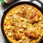 - Assemble and Bake: Nestle the partially cooked chicken breasts on top of the gnocchi mixture in the skillet. Evenly sprinkle shredded mozzarella cheese over the entire skillet. Transfer the skillet to the oven and bake for 25 minutes or until the chicken reaches an internal temperature of 165°F and the sauce has thickened.