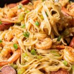 Honestly, I haven’t had the best luck freezing this one due to the cream sauce—sometimes it can separate when thawed. If you want to freeze it, I’d recommend freezing the shrimp and sausage separately from the pasta and sauce, then combining and reheating gently.