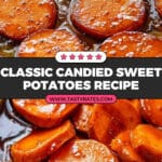 Deliciously sweet and tender candied sweet potatoes baked in a rich glaze of brown sugar, butter, maple syrup, and warm spices, with an optional splash of bourbon for added depth. Perfect for holiday dinners or as a comforting side dish any time of year.