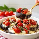 A delightful Caprese-inspired appetizer featuring juicy grape tomatoes sautéed with garlic and fresh basil, stuffed into tender Portobello mushroom caps, topped with mozzarella and Parmesan cheese, and baked to melty perfection. This recipe offers a fresh, flavorful, and elegant way to enjoy classic Caprese flavors with a savory mushroom base.