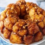 12. Cool and Unmold: Cool the monkey bread in the pan for 15 minutes on a wire rack. Invert carefully onto a serving plate using oven mitts.