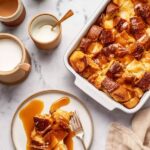 - Serve: Once the bread pudding is done baking, cut it into slices and serve warm, drizzled generously with the homemade caramel sauce.