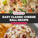 This Classic Cheese Ball recipe is a nostalgic and crowd-pleasing appetizer that combines the creamy richness of cream cheese and sharp cheddar with fresh bell pepper, scallions, and zesty lemon juice. Rolled in crunchy chopped pecans, it pairs perfectly with crackers, fresh vegetable sticks, or chips for a simple yet elegant starter or party snack.