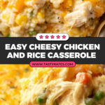 This Easy Chicken and Rice Casserole is a comforting and delicious weeknight meal featuring creamy chicken soup, tender rice, shredded rotisserie chicken, mixed vegetables, and plenty of melted cheddar cheese. Simple to prepare with pantry staples and baked to perfection, it’s a one-dish meal the whole family will love.