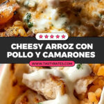 - Arroz Con Pollo Y Camarones combines savory chicken and shrimp with spicy, cheesy, and aromatic rice for a rich, comforting meal.