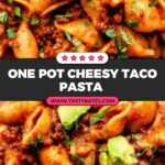 This One Pot Cheesy Taco Pasta combines the robust flavors of taco seasoning with creamy melted cheese and tender pasta for a comforting and easy weeknight meal. Ground beef, aromatic vegetables, and a rich tomato-based sauce simmer together with pasta in one pot, making cleanup a breeze. Top it with fresh avocado, cilantro, lime, or sour cream for a delicious Tex-Mex twist.