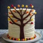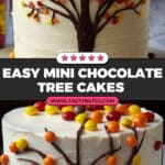 A charming and festive Chocolate Tree Cake featuring mini chocolate coffee cakes adorned with colorful chocolate trees. This recipe combines rich chocolate ganache frosting, crunchy graham crackers, and vibrant candy melts to create an eye-catching dessert perfect for fall and holiday celebrations.
