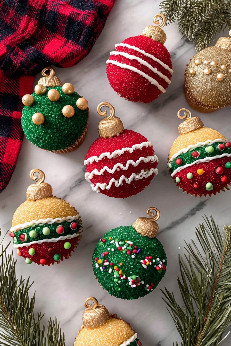 - Festive and Fun: These cupcakes are decorated to look exactly like Christmas ornaments, making them a delightful holiday centerpiece.