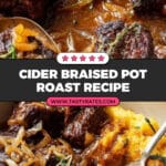 This Cider Braised Pot Roast with Crispy Sage Potatoes is a comforting and flavorful slow-cooked meal perfect for cozy dinners. The beef chuck roast is tenderly braised in a savory apple cider mixture infused with fresh thyme and apple butter, while crispy sage potatoes on the side add a delightful texture and herbal aroma.