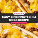- These chili dogs are a comforting classic, combining smoky grilled hot dogs, spiced Cincinnati chili, sharp cheddar cheese, and fresh onions for a delightful texture and flavor contrast.