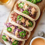 These Corned Beef Tacos feature tender, flavorful corned beef slow-baked with aromatic spices, topped with a creamy and spicy cabbage-jalapeno slaw, and drizzled with homemade Thousand Island dressing. Served on warm flour tortillas, they make a delightful and unique taco experience with a perfect balance of savory, spicy, and tangy flavors.