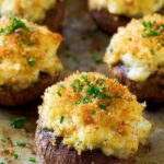 Crab Stuffed Mushrooms are an elegant and easy appetizer featuring mushroom caps filled with a creamy mixture of crab meat and three kinds of cheese, topped with buttery panko breadcrumbs, and baked to golden brown perfection. They are perfect for entertaining and can be assembled ahead of time.