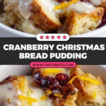 This Cranberry Christmas Bread Pudding is a deliciously rich and festive dessert perfect for the holiday season. It features dried bread cubes soaked in a creamy mixture of condensed milk, eggs, cinnamon, and vanilla, then baked with tart dried cranberries and sweet toffee bits. Finished with a drizzle of caramel sundae sauce, a sprinkle of orange zest, and optional whipped cream, this bread pudding offers a warm, comforting, and indulgent treat that is easy to prepare and sure to impress.