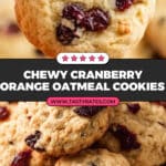 Delightfully thick and chewy Cranberry Orange Oatmeal Cookies featuring a soft middle, bursting with tart dried cranberries and zesty orange flavor. Perfectly balanced with cinnamon and a hint of vanilla, these cookies make a cozy treat for fall and holiday seasons.