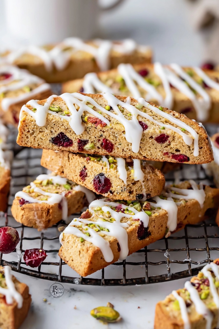 Cranberry Pistachio Biscotti with White Chocolate is a delightful crunchy Italian cookie perfect for dunking in coffee or enjoying as a festive treat. This recipe combines nutty pistachios and tart dried cranberries in a tender, twice-baked dough drizzled with smooth white chocolate for a deliciously sweet finish.