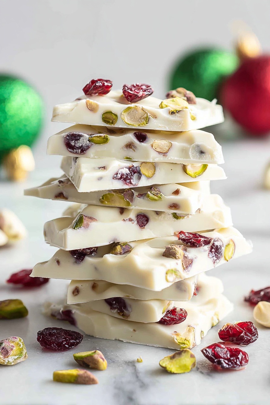 If you’re looking for a sweet and satisfying treat to whip up in no time, you absolutely have to try this Cranberry Pistachio White Chocolate Bark Recipe. It’s one of those recipes I always keep in my back pocket for last-minute gifts or quick dessert fixes. The combination of tart dried cranberries with crunchy salted pistachios nestled in smooth white chocolate is just downright addictive – trust me, this bark disappears fast every time I make it!