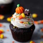 I usually top these cupcakes with mini candy eyeballs or orange and black sprinkles for a quick and fun Halloween touch. Sometimes, I get creative and use edible glitter or small fondant pumpkins to wow guests. It’s all about making these little delights as festive as they are tasty.