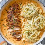 I don’t recommend freezing pasta dishes with cream sauces because the texture can change, becoming a bit grainy or separating. If you really need to freeze it, freeze the chicken and sauce separately from the pasta and combine fresh when reheating.
