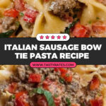 A rich and creamy Italian pasta dish featuring tender bow tie pasta coated in a savory tomato-cream sauce with flavorful sweet Italian sausage, garlic, onions, fresh basil, and Parmesan cheese. This recipe is quick enough for weeknight dinners yet elegant enough for special occasions, delivering restaurant-quality flavor in the comfort of your home.