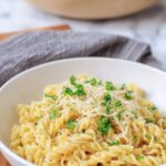 I’ve frozen this pasta a couple of times when life got busy. Just cool it completely, portion it out, and freeze in freezer-safe containers. When thawed, the texture holds up well, though the fresh herbs are best added after reheating.