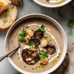 This creamy Mushroom Soup recipe offers a rich, velvety texture bursting with intense mushroom flavor. Made with a blend of white and Swiss Brown mushrooms, sautéed onions, and garlic, simmered in vegetable stock, and finished with cream or crème fraîche, this soup is perfect for a comforting starter or light meal. Topped with a drizzle of olive oil or cream, fresh herbs, and crunchy croutons, it pairs wonderfully with bread for dunking.