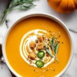 - Blend While Warm: Blending the soup while it’s still warm gives a much creamier texture; I’ve tried blending cold pumpkin soup before, and it was clumpier.