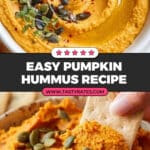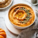 This smooth and creamy Pumpkin Hummus combines the rich flavors of pumpkin and classic Middle Eastern spices for a delightful twist on traditional hummus. Perfect as a healthy snack or appetizer, it’s easy to prepare in just 10 minutes using a food processor, making it an ideal make-ahead dip for gatherings or a nutritious everyday treat.