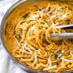 I recommend freezing the sauce separately rather than the pasta for best results. Store the pumpkin sauce in a freezer-safe container for up to 2 months. Thaw overnight in the fridge and gently reheat with a bit of milk to bring back that creamy texture before tossing with freshly cooked pasta.