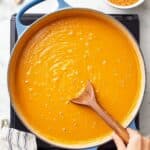 You can, but red lentils are preferred here because they cook quickly and break down into that signature creamy texture without any soaking. Green or brown lentils take longer to cook and won’t become as smooth, so you might need to adjust cooking times and expect a chunkier soup.