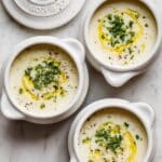 This Roasted Garlic Potato Soup is a creamy and luxurious dish where sweet roasted garlic is blended into a smooth and silky potato soup. Made with russet potatoes, leeks, onions, and a combination of milk and cream, it offers comforting flavors enhanced by Parmesan cheese and fresh thyme. Perfect for a cozy meal, it’s topped with chives or Gruyère grilled cheese croutons for extra texture and flavor.