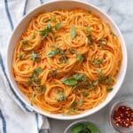 This Creamy Roasted Red Pepper Pasta is a simple yet flavorful dish featuring roasted red peppers blended into a smooth, creamy sauce with roasted onions and garlic. Tossed with al dente spaghetti and finished with fresh basil, it’s a perfect weeknight meal that comes together quickly with just a handful of ingredients.