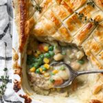 For dinner parties, I’ve served this creamy vegetable pot pie in individual ramekins topped with puff pastry circles for an elegant twist. It looks charming, and everyone gets their own personal pot pie. Another fun idea is to use mini pie crusts to make bite-sized pot pies—great for game day snacking or appetizer trays.