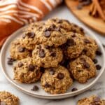 These Sweet Potato Cookies are moist, fluffy, and packed with wholesome oats, warm spices, and plenty of semi-sweet chocolate chips. Perfectly spiced with cinnamon and nutmeg, these cookies combine the natural sweetness and moisture of mashed sweet potatoes with the classic comfort of chocolate chips for a delicious and unique treat.