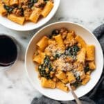 I’ve had success freezing the sauce separately in a freezer-safe container—just reheat gently and toss with freshly cooked rigatoni. The kale’s texture softens a bit after freezing, so I recommend freezing the greens separately or adding fresh kale when reheating.