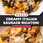 7. Combine Pasta and Sauce: Toss the cooked rigatoni with the sauce. If needed, add reserved pasta water in small increments to thin the sauce to desired consistency.