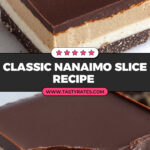 Nanaimo Slice is a classic Canadian no-bake layered dessert featuring a crunchy, nutty base topped with a rich custard-flavored buttercream and finished with a glossy layer of dark chocolate and butter. This indulgent treat combines textures of coconut, walnuts, and smooth chocolate in every bite, making it a perfect slice for any chocolate lover’s dessert platter.