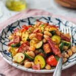This Dense Bean Salad with Sun-Dried Tomato Vinaigrette is a fresh, nutritious, and protein-packed meal combining chickpeas, cannellini beans, colorful vegetables, cooked chicken, salami, and cheeses tossed in a flavorful vinaigrette. Perfect for quick lunches or make-ahead meals, it offers a satisfying balance of textures and bold flavors in every bite.