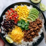 - Assemble the Taco Bowls: Spoon the lime-cilantro rice into bowls, top with the seasoned beef mixture, and add any desired toppings such as shredded cheese, sour cream, avocado, or lettuce.